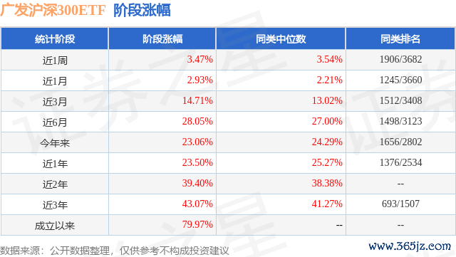 从业绩表现来看,广发沪深300ETF基金过去一年净值涨幅为10.1%,在同类基金中排名1216/2216,同类基金过去一年净值涨幅中位数为11.09%。而基金过去一年的最大回撤为-15.45%,成立以来的最大回撤为-41.21%。